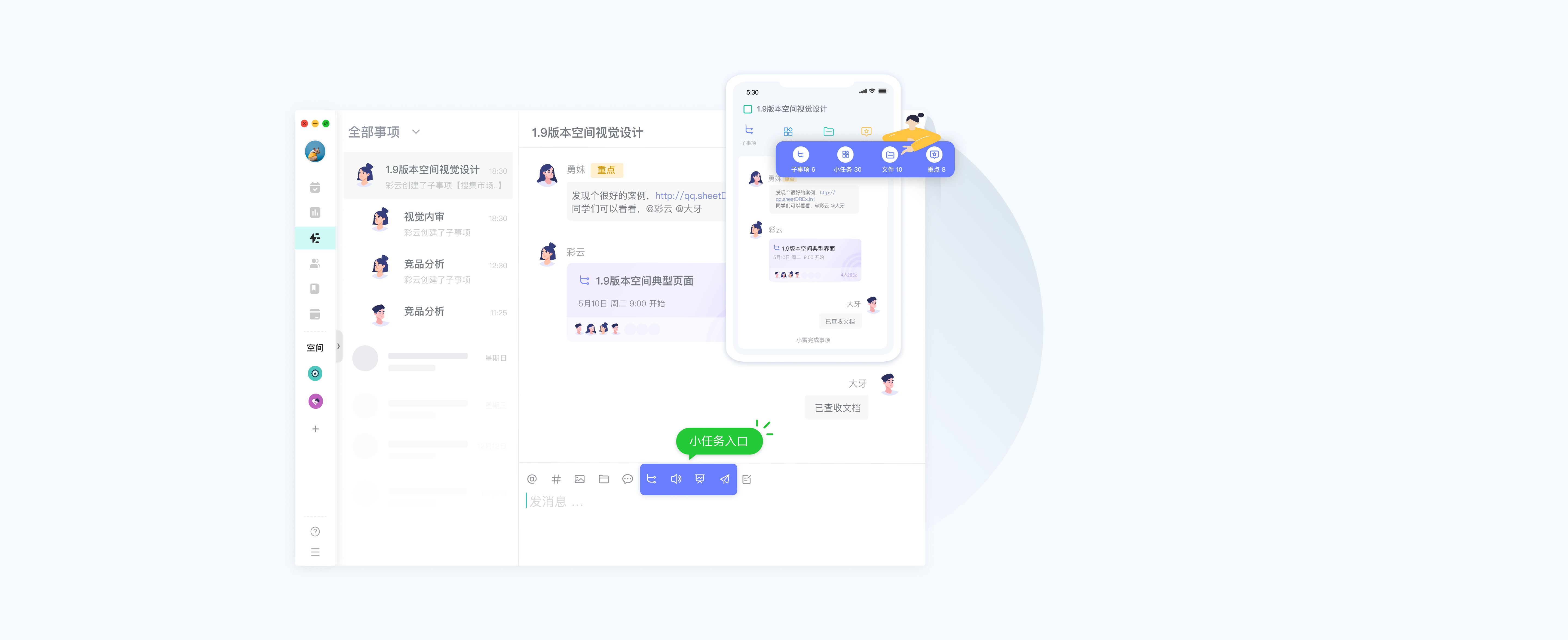 ● 小任务:快速创建子事项/会议/待办/公告小任务