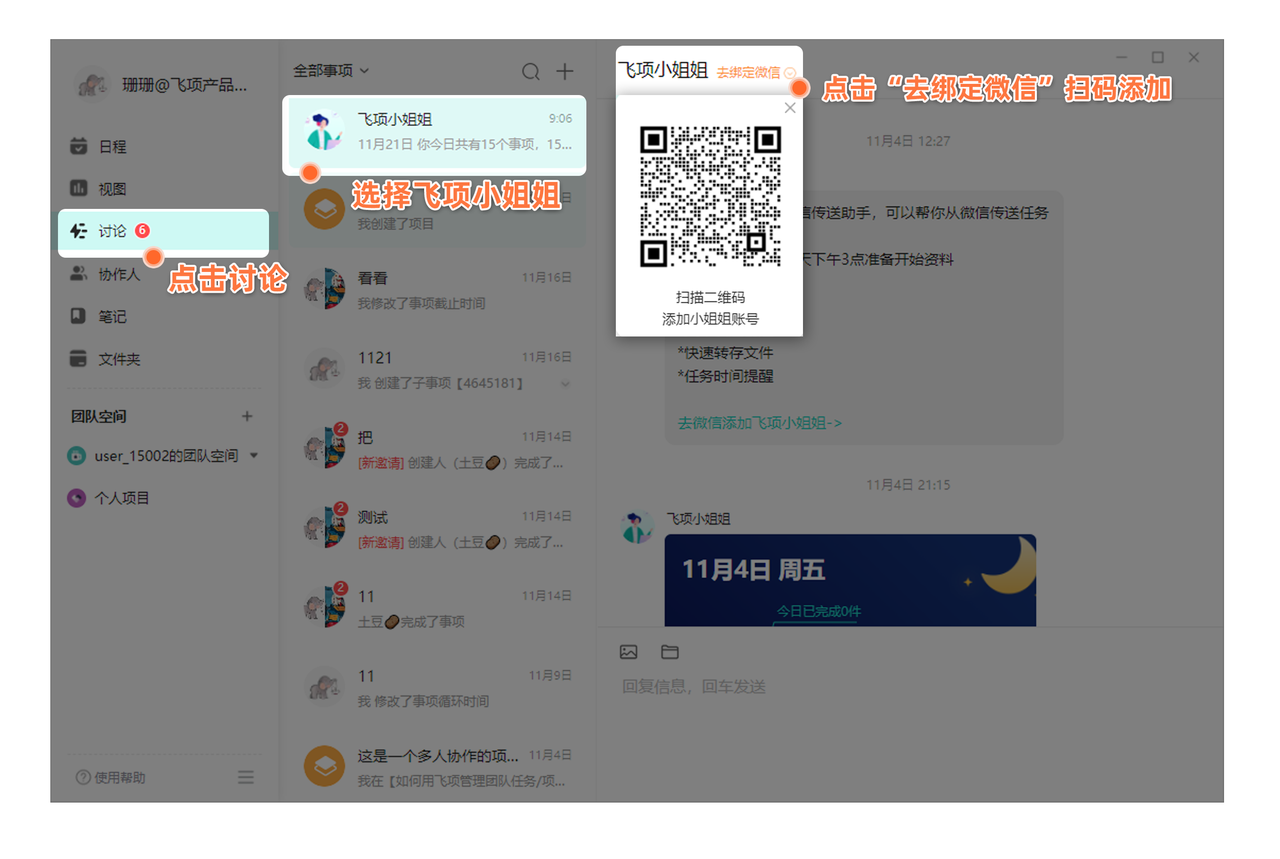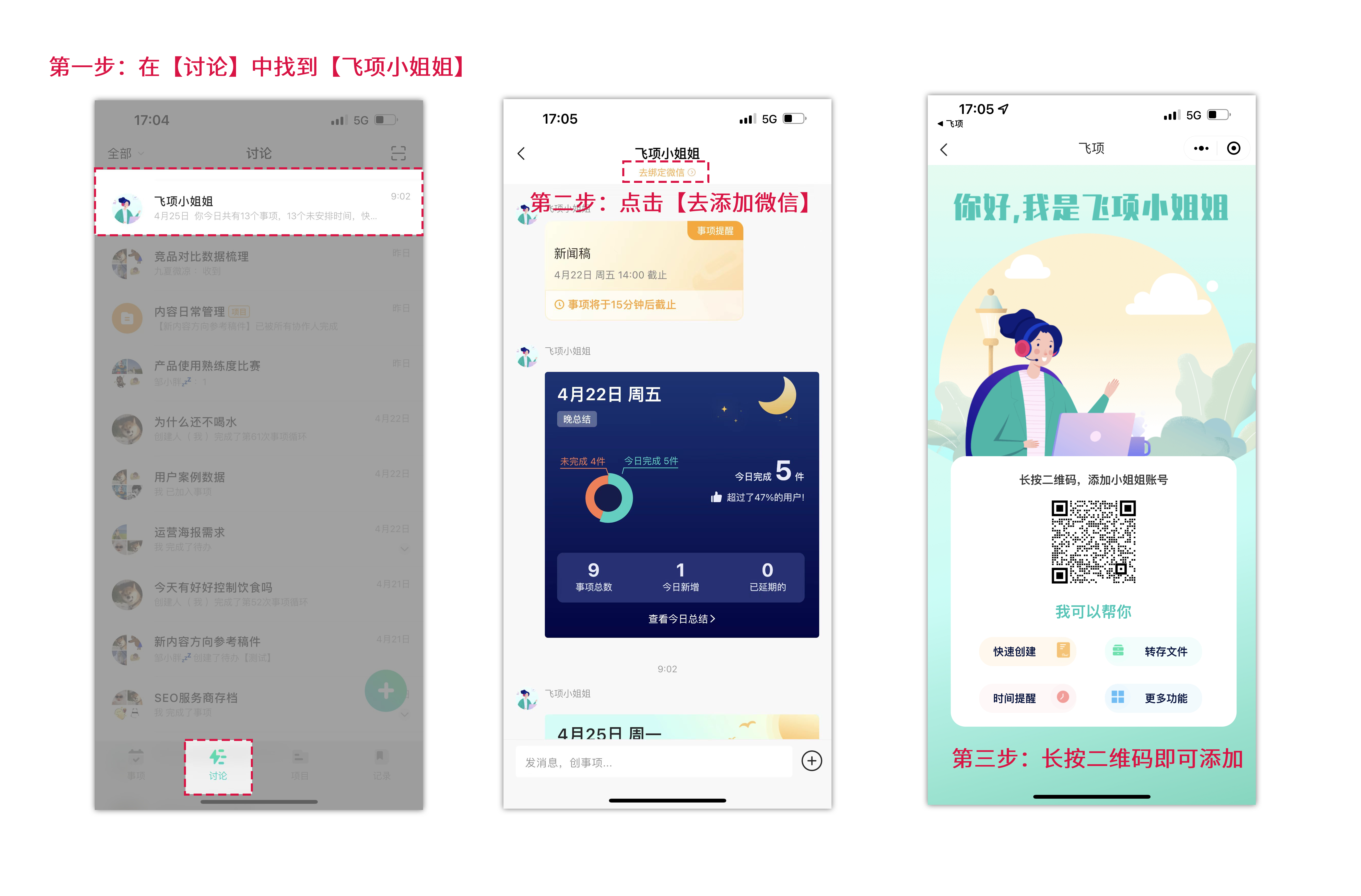 关注“飞项”公众号,每天早上9点通过微信公众号和app客户端推送当天计划,每天晚上21点通过飞项APP发送当天总结