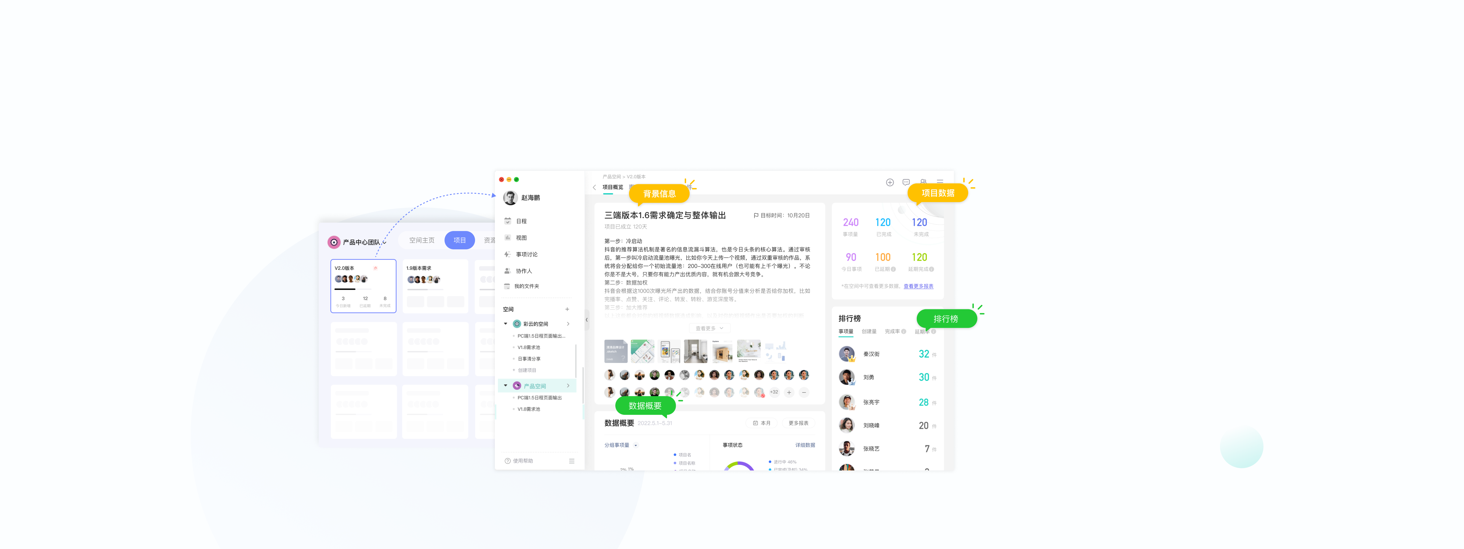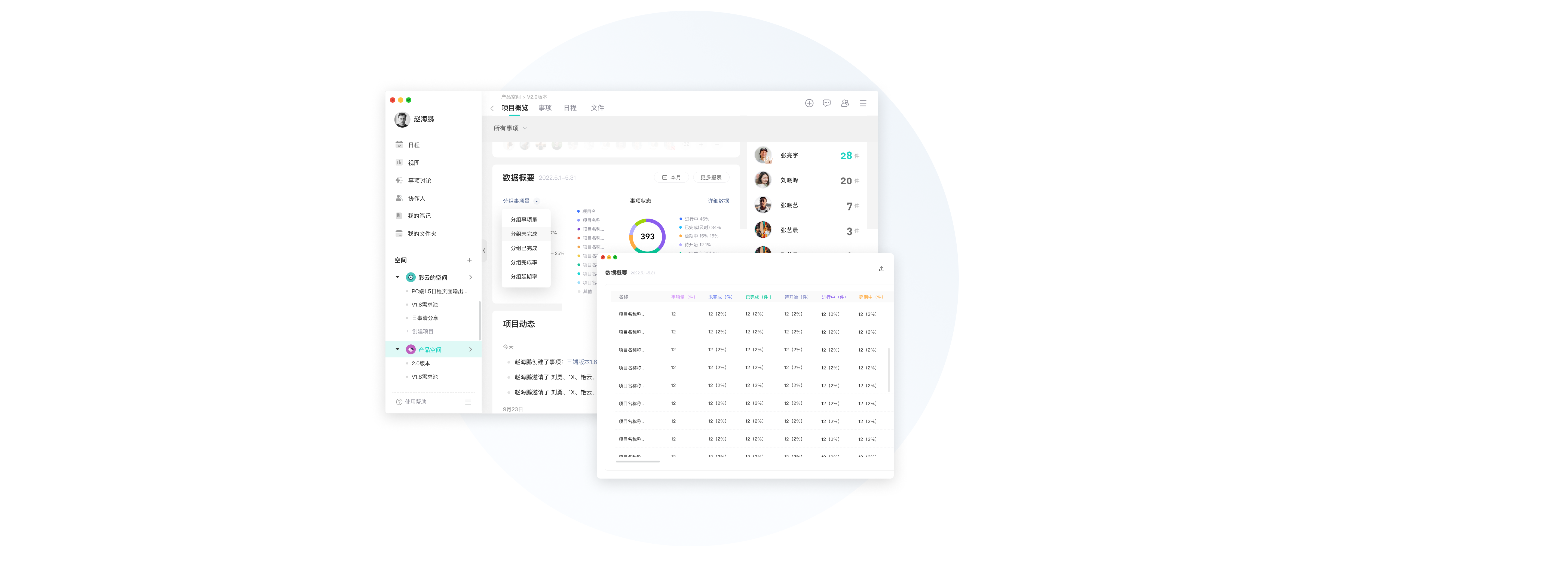 ● 从事项、项目、人员等多维度分析空间中所有业务数据